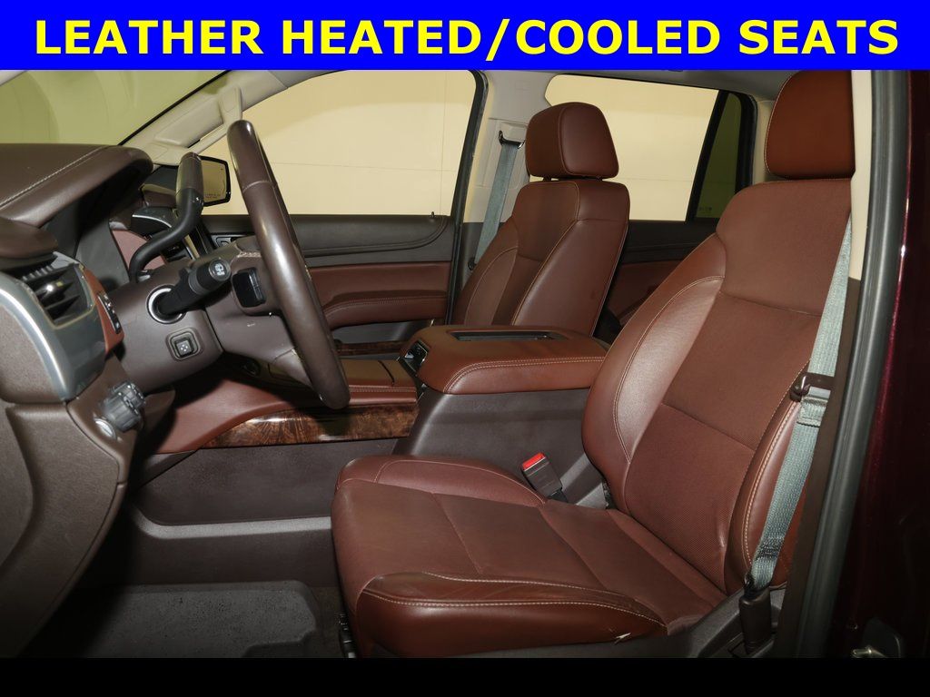 ** Alloy Wheels / Premium Wheels, ** Apple CarPlay/Android Auto, ** Backup Camera, ** Blind Spot Monitor, ** Cooled Seats, ** Cross Traffic Alert, ** Cruise Control, ** Heated Seats, ** Heated Steering Wheel, ** Keyless Entry, ** Keyless Start, ** Lane Departure Warning, ** Leather Seats, ** Navigation System, ** Panoramic Roof / Sunroof, ** Premium Sound System / Premium Audio, ** Rear Cross Traffic Alert, ** Remote Start, ** Satellite Radio, ** Stability Control, ** Steering Wheel Controls, ** Sunroof/Moonroof, ** Third Row Seating / 3rd Row Seating, ** USB Port, ** WiFi Hotspot, ** All-Wheel Drive, ** Four-Wheel Drive / 4X4, 4WD, Cocoa/Mahogany Leather, 3rd Row 60/40 Power Fold Split-Bench, 4-Wheel Antilock Disc Brakes w/Brake Assist, 4-Wheel Disc Brakes, ABS brakes, Adaptive suspension, Adjustable pedals, Air Conditioning, AM/FM radio: SiriusXM, Apple CarPlay/Android Auto, Auto-dimming door mirrors, Auto-Dimming Inside Rear-View Mirror, Automatic temperature control, Black Assist Steps w/Chrome Accent Strip, Bose Centerpoint Premium 10-Speaker Surround Sound, Brake assist, Compass, Driver Inboard & Front Passenger Airbags, Driver vanity mirror, Dual front impact airbags, Dual front side impact airbags, Electronic Stability Control, Emergency communication system: OnStar Guidance, Enhanced Driver Alert Package (Y86), Enhanced Driver Information Center, Exterior Parking Camera Rear, Fog Lamps, Forward Collision Alert Sensor Indicator, Front & Rear Parking Assist, Front Bucket Seats, Front fog lights, Front wheel independent suspension, Fully automatic headlights, Garage door transmitter, Hands Free Power Liftgate, Heated & Vented Driver & Front Passenger Seats, Heated 2nd Row Seats, Heated door mirrors, Heated front seats, Heated Leather Wrapped Steering Wheel, Heated rear seats, High-Intensity Discharge Headlights, IntelliBeam Headlamps, Lane Keep Assist, Low Speed Forward Automatic Braking, Low tire pressure warning, Magnetic Ride Control Suspension Package, Memory seat, NavTraffic, Occupant sensing airbag, OnStar Basic Plan For 5 Years, Outside temperature display, Passenger vanity mirror, Perforated Leather-Appointed Seat Trim, Power door mirrors, Power driver seat, Power Liftgate, Power Release 2nd Row Bucket Seats, Power Tilt & Telescopic Steering Column, Power windows, Power-Adjustable Accelerator & Brake Pedals, Preferred Equipment Group 1LZ, Push Button Keyless Start, Radio: Chevrolet MyLink w/Nav/AM/FM Stereo, Rain sensing wipers, Rear window defroster, Rear window wiper, Roof-Mounted Luggage Rack Side Rails, Security system, Side Blind Zone Alert w/Lane Change Alert, Single-Slot CD/MP3 Player, SiriusXM Satellite Radio, Speed control, Speed-sensing steering, Split folding rear seat, Steering wheel mounted audio controls, Tachometer, Telescoping steering wheel, Tilt steering wheel, Traction control, Trip computer, Turn signal indicator mirrors, Universal Home Remote, Variably intermittent wipers, Ventilated front seats, Voltmeter, Wheels: 22" x 9" 6-Spk Chrome Multi-Feature Design, Wireless Charging.