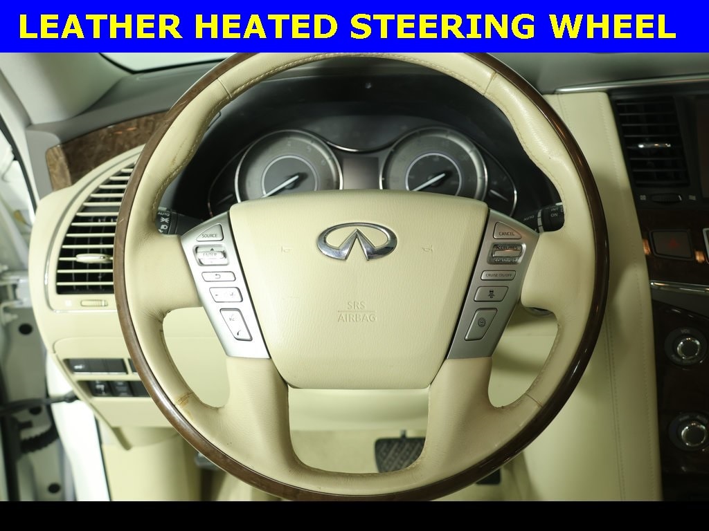 ** Alloy Wheels / Premium Wheels, ** Apple CarPlay/Android Auto, ** Backup Camera, ** Blind Spot Monitor, ** Cruise Control, ** Heated Seats, ** Heated Steering Wheel, ** Keyless Entry, ** Keyless Start, ** Leather Seats, ** Navigation System, ** Panoramic Roof / Sunroof, ** Premium Sound System / Premium Audio, ** Rear Seat Entertainment, ** Remote Start, ** Satellite Radio, ** Stability Control, ** Steering Wheel Controls, ** Sunroof/Moonroof, ** Third Row Seating / 3rd Row Seating, ** USB Port, ** WiFi Hotspot, 120V Power Outlet, 3rd row seats: split-bench, 4-Wheel Disc Brakes, ABS brakes, Air Conditioning, AM/FM radio: SiriusXM, Anti-whiplash front head restraints, Auto High-beam Headlights, Auto tilt-away steering wheel, Auto-dimming door mirrors, Auto-dimming Rear-View mirror, Auto-leveling suspension, Automatic temperature control, Backup Collision Intervention (BCI), Blind Spot Warning, Bose Premium Sound System, Brake assist, CD player, Delay-off headlights, Driver vanity mirror, Driver's Assistance Package, Dual 7" Color Monitors, Dual front impact airbags, Dual front side impact airbags, Electronic Stability Control, Emergency communication system: INFINITI Connection, Four wheel independent suspension, Front dual zone A/C, Front fog lights, Front reading lights, Fully automatic headlights, Garage door transmitter: HomeLink, Genuine wood dashboard insert, Heated 2nd-Row Seats, Heated door mirrors, Heated Front Bucket Seats, Heated steering wheel, Illuminated entry, Intelligent Cruise Control (Full-Speed Range), Leather steering wheel, Leather-Appointed Seats w/Mocha Burl Trim, Low tire pressure warning, Memory seat, Navigation System, Occupant sensing airbag, Outside temperature display, Overhead console, Panic alarm, Passenger vanity mirror, Power door mirrors, Power driver seat, Power Liftgate, Power moonroof, Power passenger seat, Power windows, Rain sensing wipers, Rear air conditioning, Rear reading lights, Rear window defroster, Rear window wiper, Reclining 3rd row seat, Remote keyless entry, Security system, Speed control, Speed-sensing steering, Steering wheel memory, Steering wheel mounted audio controls, Tachometer, Telescoping steering wheel, Theater Package, Tilt steering wheel, Traction control, Trip computer, Turn signal indicator mirrors, Variably intermittent wipers, Voltmeter, Wheels: 20" Split 6-Spoke Aluminum-Alloy, Wireless Headphones (2).