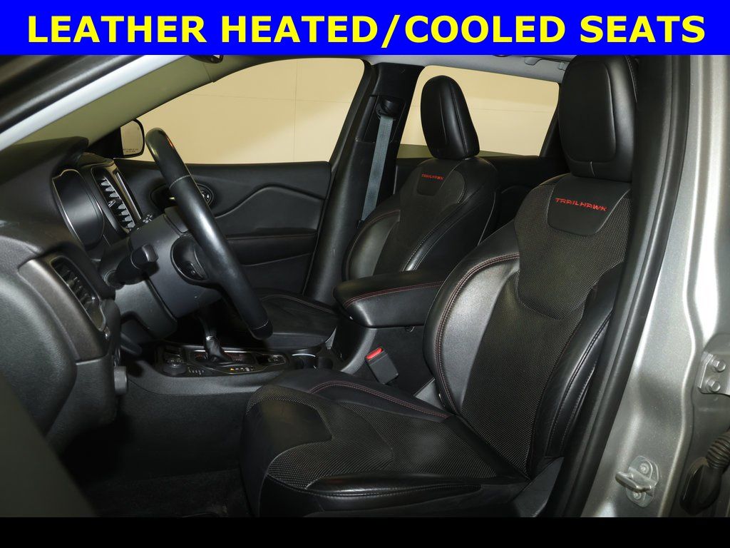 ** Alloy Wheels / Premium Wheels, ** Apple CarPlay/Android Auto, ** Backup Camera, ** Blind Spot Monitor, ** Cooled Seats, ** Cross Traffic Alert, ** Cruise Control, ** Heated Seats, ** Heated Steering Wheel, ** Keyless Entry, ** Keyless Start, ** Leather Seats, ** Panoramic Roof / Sunroof, ** Premium Sound System / Premium Audio, ** Rear Cross Traffic Alert, ** Remote Start, ** Satellite Radio, ** Stability Control, ** Steering Wheel Controls, ** Sunroof/Moonroof, ** USB Port, ** WiFi Hotspot, ** All-Wheel Drive, ** Four-Wheel Drive / 4X4, 4-Wheel Disc Brakes, 8.4" Touchscreen Display, ABS brakes, Air Conditioning, AM/FM radio: SiriusXM, Anti-whiplash front head restraints, Apple CarPlay/Android Auto, Auto-Dimming Rear-View Mirror, Automatic temperature control, Auxiliary Transmission Oil Cooler, Brake assist, Compass, Delay-off headlights, Driver vanity mirror, Dual Bright Exhaust Tips, Dual front impact airbags, Dual front side impact airbags, Electronic Stability Control, Engine Oil Cooler, Exterior Mirrors Courtesy Lamps, Exterior Mirrors w/Memory, Exterior Mirrors w/Supplemental Signals, Four wheel independent suspension, Front dual zone A/C, Front fog lights, Front reading lights, Fully automatic headlights, Google Android Auto, GPS Antenna Input, Hands-Free Power Liftgate, Heated door mirrors, Heated Front Seats, Heated Steering Wheel, Hill Descent Control, Illuminated entry, Knee airbag, Leather Shift Knob, Low tire pressure warning, Occupant sensing airbag, Off Road Suspension, Outside temperature display, Overhead console, Panic alarm, ParkView Rear Back-Up Camera, Passenger vanity mirror, Power door mirrors, Power driver seat, Power Driver/Passenger 4-Way Lumbar Adjust, Power Front/Fixed Rear Full Sunroof, Power windows, Premium Alpine Speaker System, Premium Leather Trimmed Bucket Seats, Quick Order Package 27L Trailhawk Elite, Radio: Uconnect 4 w/8.4" Display, Radio/Driver Seat/Exterior Mirrors Memory, Rear reading lights, Rear seat center armrest, Rear window defroster, Rear window wiper, Remote keyless entry, Remote Start System, Security Alarm, SiriusXM Satellite Radio, Speed control, Speed-sensing steering, Split folding rear seat, Steering wheel mounted audio controls, Tachometer, Telescoping steering wheel, Tilt steering wheel, Traction control, Trip computer, Turn signal indicator mirrors, Universal Garage Door Opener, USB Host Flip, Variably intermittent wipers, Ventilated Front Seats, Voltmeter, Wheels: 17" x 7.5" Black Painted Aluminum, Windshield Wiper De-Icer.